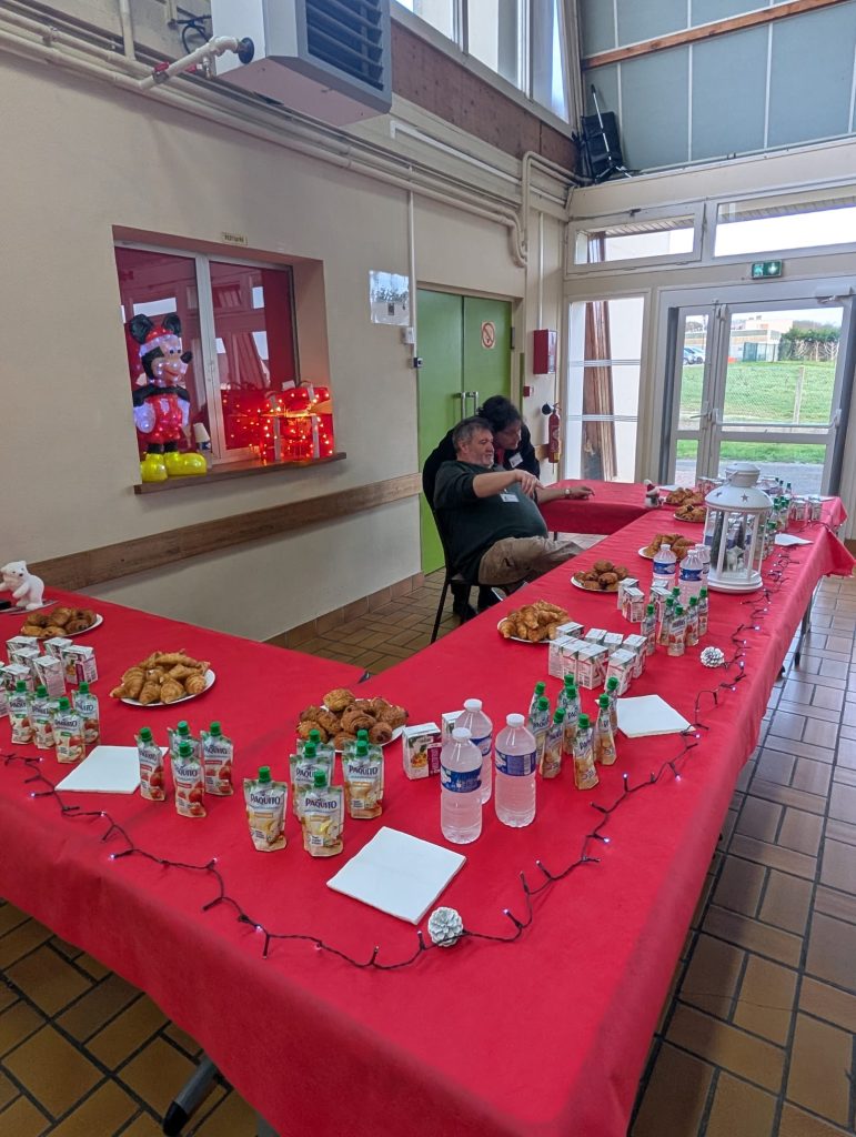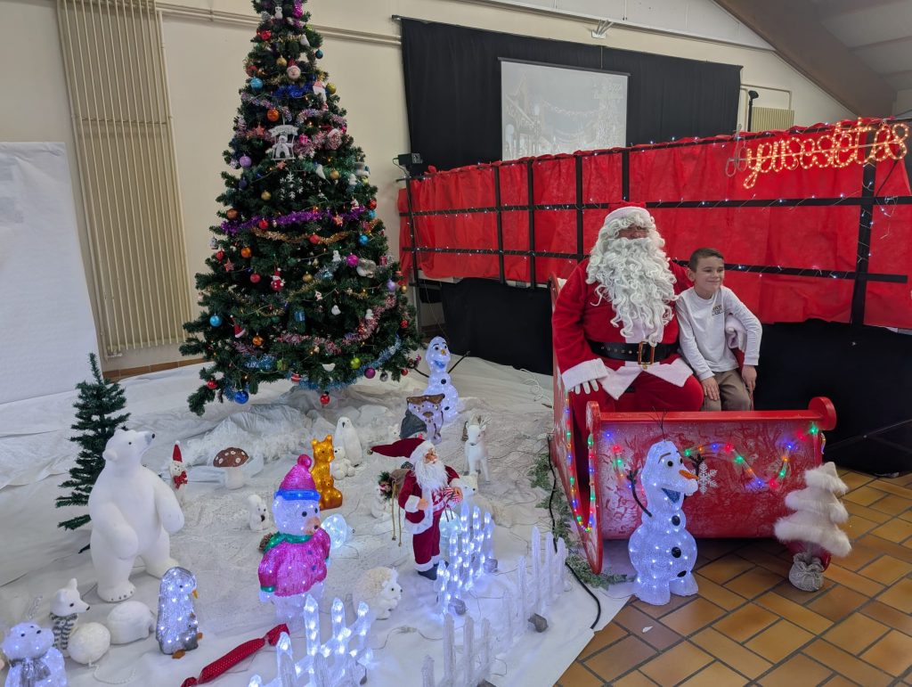 À 16h15, l’arrivée tant attendue du Père Noël a offert un temps fort de l’après-midi, accompagnée d’une séance photo et d’un goûter gourmand partagé en famille.